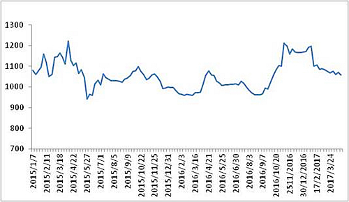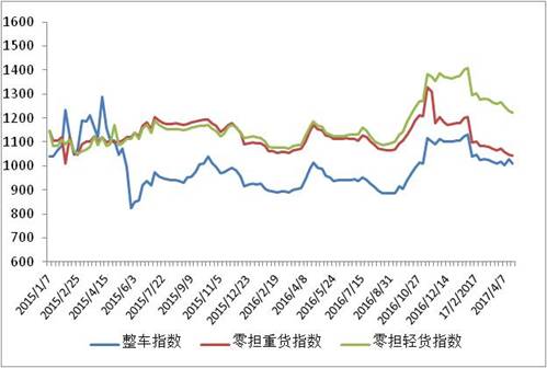 本周(2017年4月17日~4月21日),由中国物流与采购联合会和林安物流集团联合调查的中国公路物流运价指数1058.78点,环比回落1.0%。