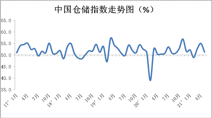 中国物流与采购联合会发布的2021年5月份中国物流业景气指数为55.8%,较上月回落1.5个百分点;中国仓储指数为51.3%,较上月下降3.7个百分点。