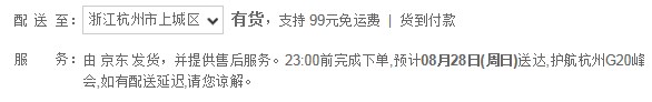 电商:京东,天猫,苏宁,均表示在G20期间正常营业。其中天猫超市表示部分商品停止销售,大本营在杭州的阿里巴巴董事长马云录视频为杭州代言。同时三方都表示因护航杭州G20峰会配送可能会延迟。京东配送由次日达改为隔日达。