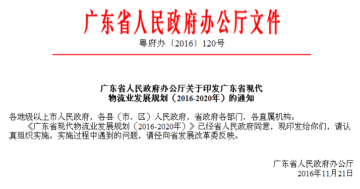 “十二五”时期特别是《广东省物流业调整和振兴规划》实施以来,全省现代物流业发展环境不断优化,产业规模持续增长,物流运输网络日趋完善,物流服务能力显著提升,物流信息化和标准化建设稳步推进,为进一步加快发展奠定了坚实基础。