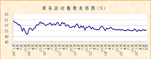 中国物流与采购联合会、国家统计局服务业调查中心发布的2016年9月份中国非制造业商务活动指数环比上升0.2个百分点,达到53.7%。支持市场经营增速加快是市场需求的明显改善。新订单指数升幅明显,就业活动持续改善,企业预期也趋于乐观,经济运行继续向好的方向发展。