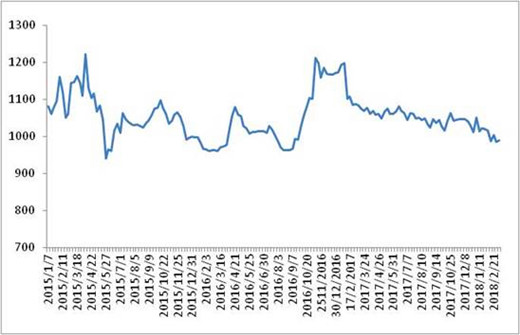 本周(2018年3月5日~3月9日),由中国物流与采购联合会和林安物流集团联合调查的中国公路物流运价指数989.92点,环比回升0.49%。