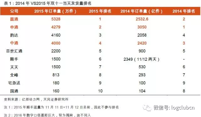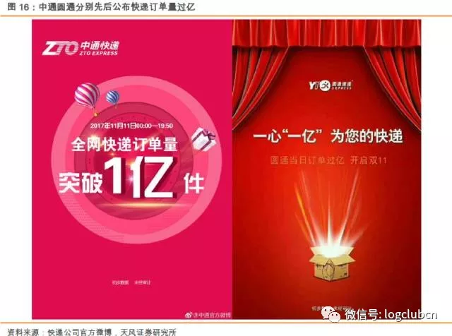 2) 快递是高成长行业,双十一作为全年需求巅峰,各家发货量实际上能够侧面反映各家快递企业的产能极限,代表了公司本年度在运力、产能和网络能力上的增加,同时为次年的竞争格局提供先行指标。